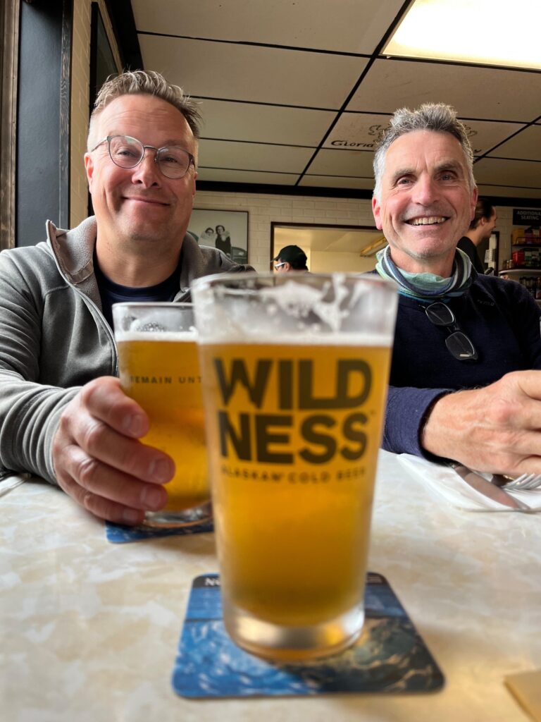 Waiting for the Halibut fish and chips with a lager from the local brewery