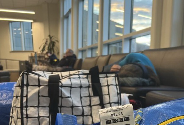 And we were not alone. Apparently planes arrive and leave Juneau at just about any hour. And tens of people were sleeping on the couches in a “lounge” area. Well ordered and quiet.