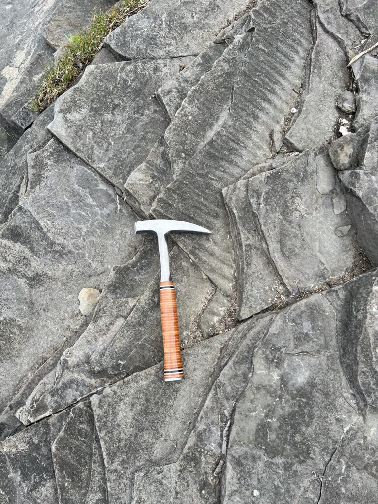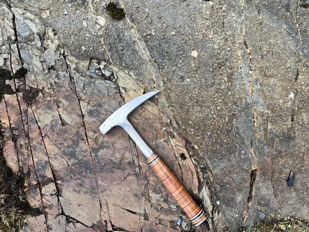Then nothing is recorded in the area until a middle Cambrian transgression deposited first the basal conglomerate, and then the characteristic banded Cambro-Silurian succession, before the Caledonian Orogeny rose to the Northwest folded and faulted the banded cambrosilurian and shed a upper Silurian to lowermost Devonian clastic succession burying the now folded underlying banded strata.
