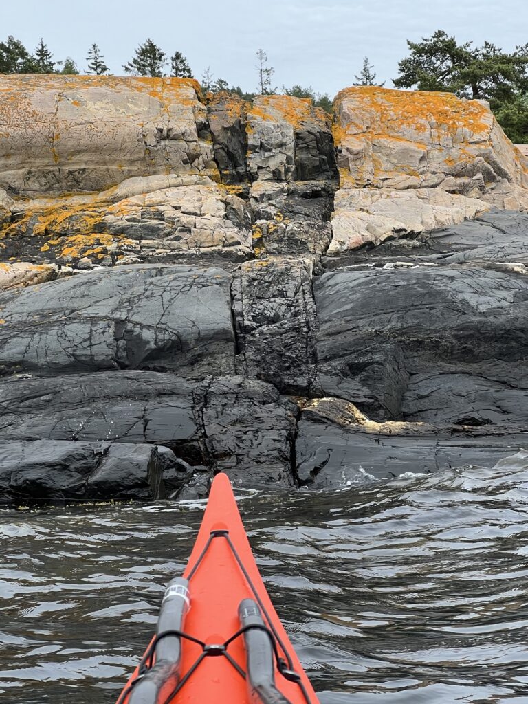 2 a Middle Cambrian transgression that created an extensive shallowish marine environment (all the way to Baltikum). in this sea first the basal conglomerate and then the ubiquitous (for paddlers) characteristic interchanging light gray and black cambrosilurian strata were deposited