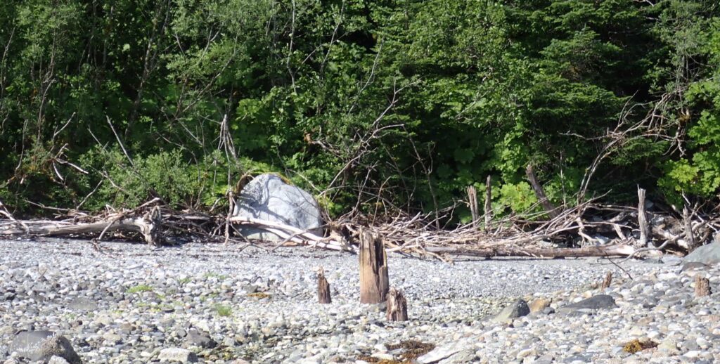We have also seen intrastadial tree trunks sticking out of the gravel on the shoreline. These are the remains of trees that grew before the last glaciatiaon of the area and somehow escaped total destruction by the ice during glaciation.