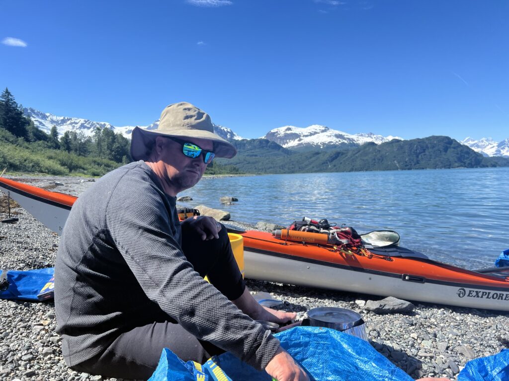 We slept a bit on the “bear alert”, but well out of the way of where we saw its trek. “Let’s hope for a quiet night” Mikko said as we crept into the tents. We all expected one of the two alarms (one for food, the other for the kayaks) to go off. But no, we really got a quiet night.