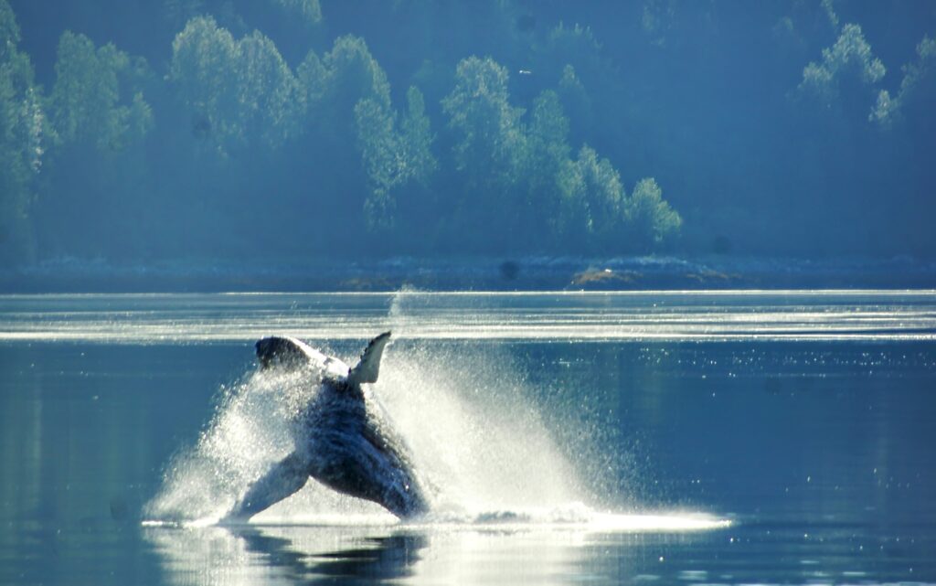 After about three hours paddling we finally approached the ferry jetty in Gustavus. Time to think about a lunch break. Again we heard the sound of gunshot ahead. Another humpback we thought.