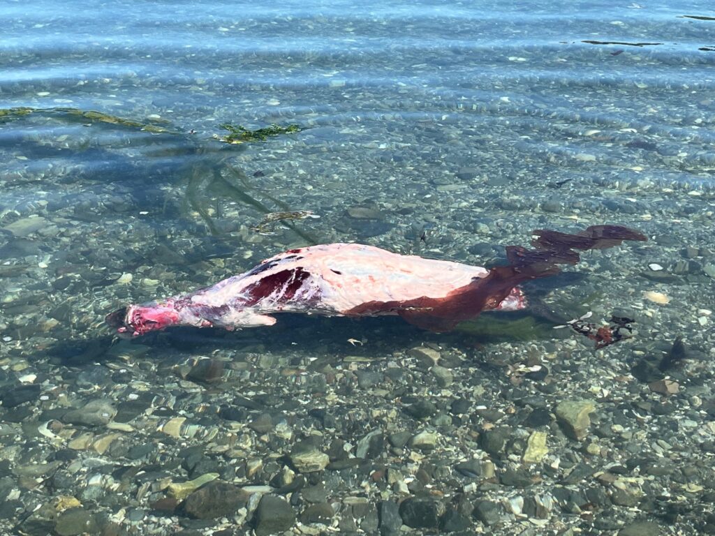 Only then did we become aware of something drifting slowly toward the beach. Erling waded out to investigate. It was four fleeced sea otter carcasses. The gun shot sound we heard might have been just that -a gunshot?