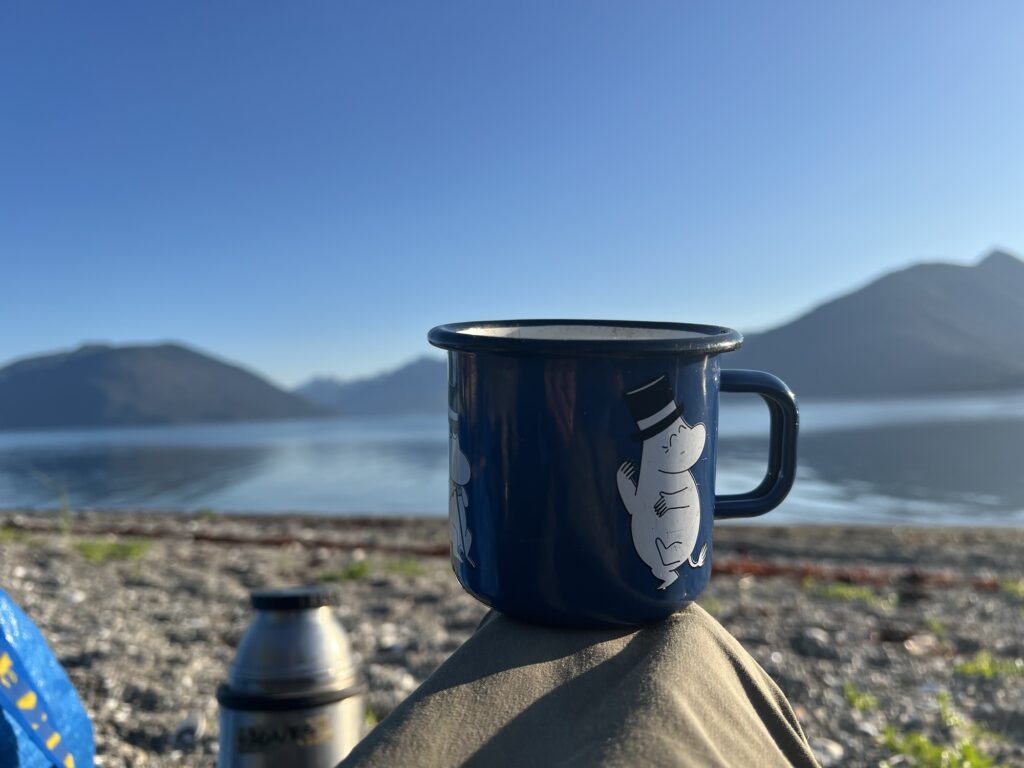We paddled on for about 1 km and to the last beach of the island. It was also a good one and bigger which means more space for man and beast to stay clear of each other. 1 km isn’t a long walk for a bear family, but we looked at the bright side: they would be busy with their carcass (?)